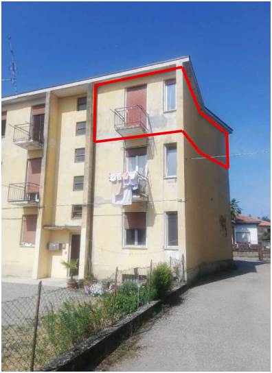 LIBERO Appartamento composto da ingresso, soggiorno, cucina, bagno, camera, lavanderia, ripostiglio, 2 balconi e terrazzo, con cantina al piano interrato, è dotato di riscaldamento autonomo con caldaia muraria.