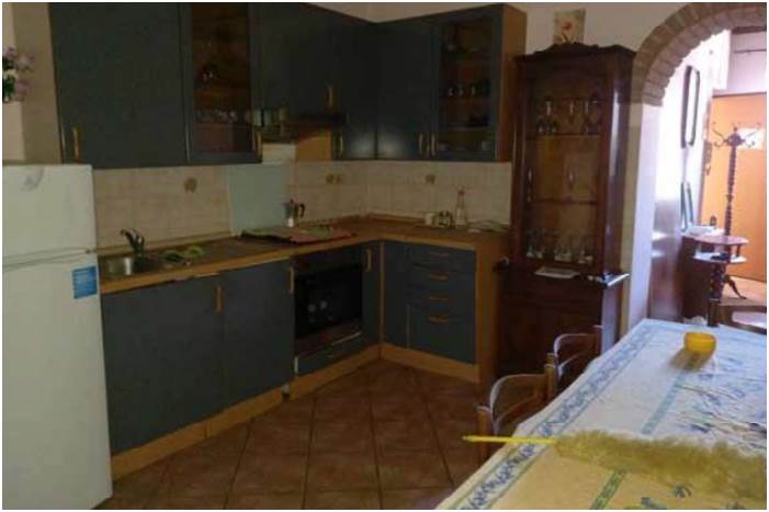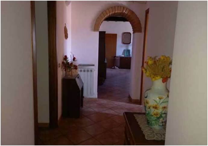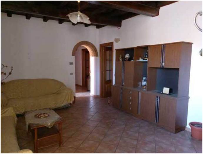 Abitazione posta al primo piano suddivisa in un ampio soggiorno, cucina abitabile con bagno di servizio, corridoio distributivo su cui si affacciano tre camere, un ripostiglio ed un bagno di ampie dimensioni. L'unità immobiliare è in buone condizioni manutentive e sono presenti i principali impianti: acqua, corrente elettrica, gas e impianto termico autonomo con caldaia a produzione di acqua calda idrico sanitaria. Completa l'abitazione una tettoia al piano terra.