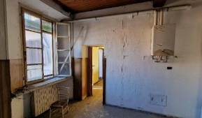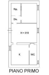 LIBERO APPARTAMENTO sito al piano primo di un fabbricato residenziale della tipologia di casa di corte, sviluppato su un totale di due livelli fuori terra e servito da corpo scala esterno, internamente composto da ingresso su soggiorno/pranzo, cucina, disimpegno, servizio igienico, ripostiglio e camera da letto e con una cantina pertinenziale ubicata al piano terra dell’edificio