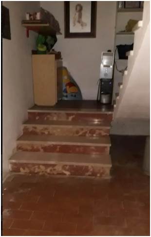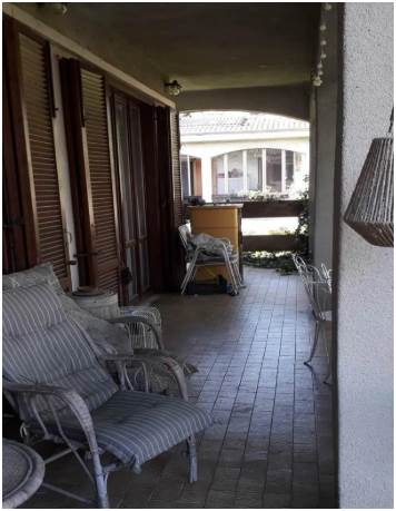 collegati da scala interna, composta da: al piano terreno-rialzato: soggiorno, cucina, disimpegno, tre camere, due bagni e porticato; al piano primo (sottotetto): camera, disimpegno su scala e terrazzo; al piano seminterrato: tre vani uso cantina, centrale termica, W.C. e box auto. Superficie lorda complessiva dell’abitazione al piano terra/rialzato e primo circa mq. 184,00