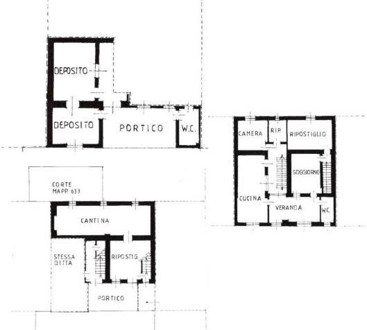 Al piano terra due depositi, portico, servizio igienico, ripostiglio e cantina. Al piano primo ingresso, ampio soggiorno, cucina abitabile, veranda, disimpegno e bagno, ripostiglio sul retro oltre a vano rustico, al piano sottotetto al rustico accessibile e recuperabile parzialmente.Terreno mq 310.