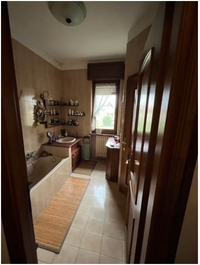 Villa con annesso giardino pertinenziale, disposto su due livelli così costituito: al piano terra un vano indicato catastalmente come autorimessa ma adattato ad uso abitativo, un locale di sgombero sul lato est, un locale di sgombero adattato ad uso cucina sul lato sud ovest, bagno, un vano di cantina adattato ad uso abitativo ricavando anche un ulteriore bagno rispetto a quello indicato nelle planimetrie catastali, un locale lavanderia adattato ad uso abitativo, centrale termica e portico (pertanto il piano terra, originariamente realizzato ad uso spazi accessori all'abitazione soprastante è stato adattato in larga parte ad uso abitativo ad esclusione del locale di sgombero in lato est) al primo piano ingresso soggiorno, cucina, disimpegno, tre camere, bagno e due balconi. Valore stimato €144.840