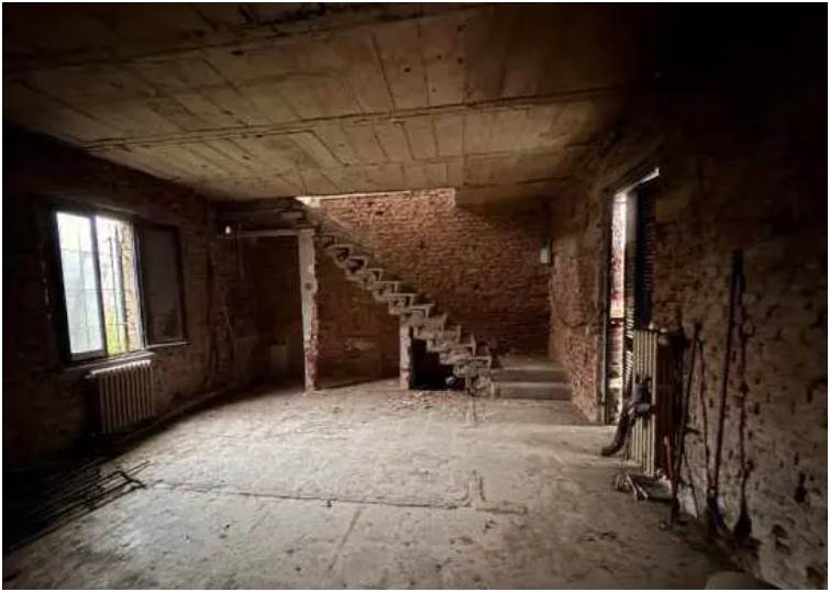 Compendio immobiliare costituito da: 1) un’abitazione di tipo economico con accesso indipendente disposta su due piani collegati tra loro tramite due scale interne, composta da quattro locali, servizi, scale e due balconi al primo piano, sottostanti tre locali, disimpegno, cucina e scale al piano terra con area di corte pertinenziale annessa ed un piccolo locale di servizio (completamente crollato) in un corpo staccato nel cortile. L’abitazione si presenta come un cantiere abbandonato con parti di tramezze interne demolite e privo di impianti; 2) un magazzino di un solo piano, pertinenziale al fabbricato di cui sopra, costituito da n.3 locali adibiti a magazzino nonché un vano deposito al piano terra di un altro corpo staccato nel suindicato cortile (completamente crollati).