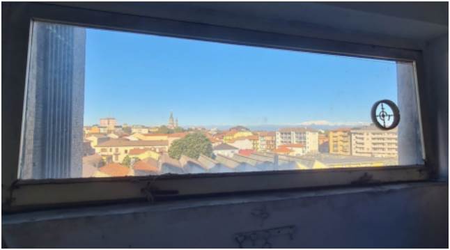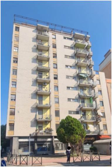 Appartamento al piano quarto composto da ingresso, soggiorno, cucina, due camere, bagno, ripostiglio e balcone con annessa cantina al piano seminterrato.